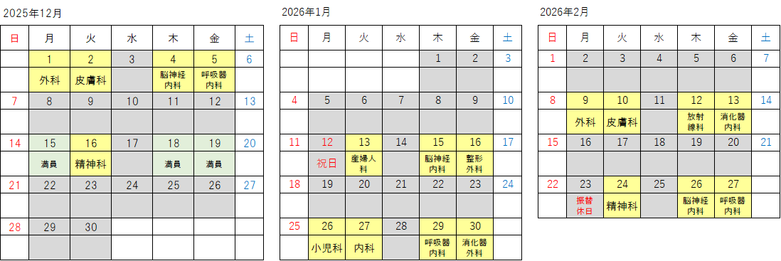また、医師の都合により、日程の変更や見学が中止になる場合がありますのでご了承ください。