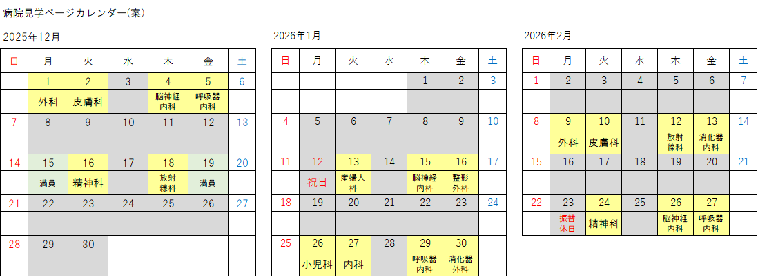 今後の病院見学の実施期間は5月~8月、12月~3月です。
