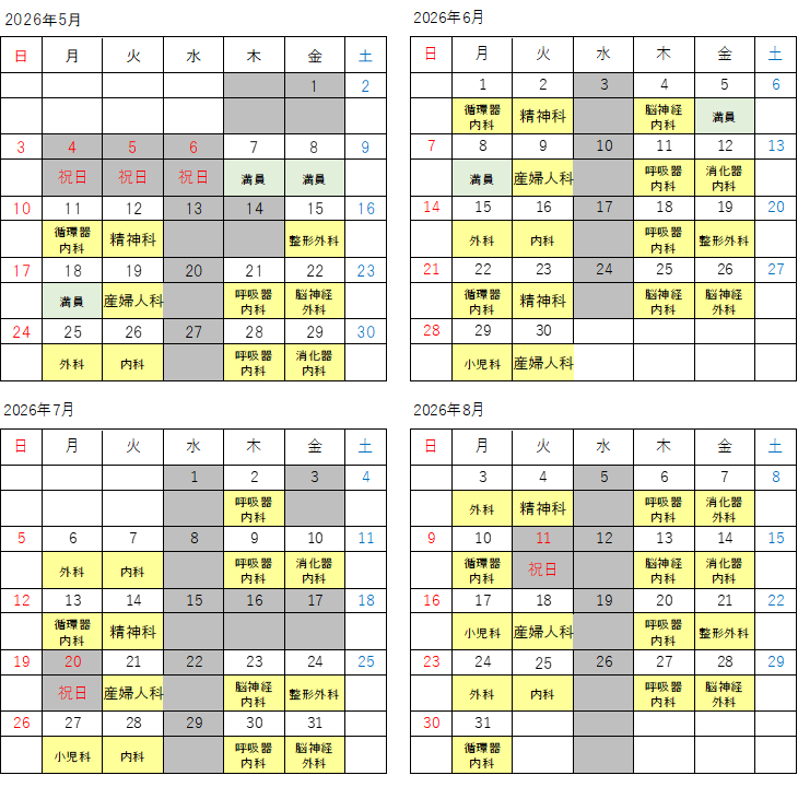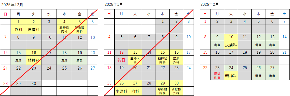 また、医師の都合により、日程の変更や見学が中止になる場合がありますのでご了承ください。