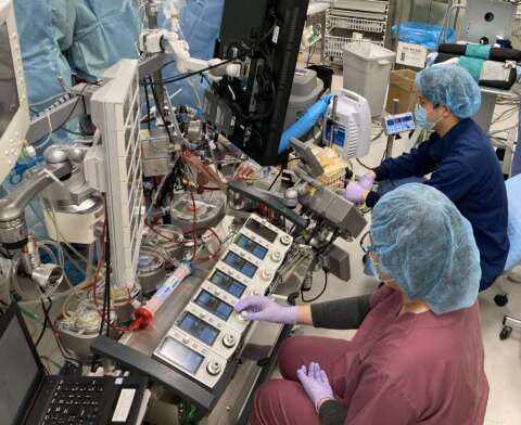 人工心肺装置は、心臓や大血管の手術時や、重症な循環不全時の体外循環による治療(V-A ECMO・IABP・IMPELLA)時や重症な呼吸不全時の体外循環による治療(V-V ECMO)時に、心臓(血液の循環)及び肺臓(血液の酸素化)の働きを代行します。この装置の操作を臨床工学技士が行います。この技術の認定資格が、体外循環技術認定士です。