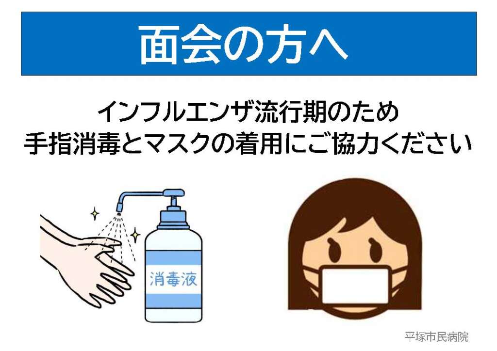 インフルエンザの流行期につき、面会時のマスクの着用にご協力ください。