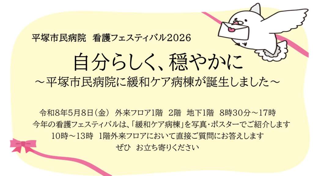最近の記事 2026/04/17 2026:04:17:10:11:29 【5月8日(金)】看護フェスティバル2026を開催します! 2026/04/01 2026:04:01:23:00:00 「地域がん診療連携拠点病院」と「DPC特定病院群」の指定について 2026/04/01 2026:04:01:17:30:00 院内マスクの着用は個人の判断 2026/04/01 2026:04:01:17:20:00 耳鼻咽喉科・頭頸部外科 診療体制変更に関するお知らせ 2026/04/01 2026:04:01:17:15:00 皮膚科 診察体制変更に関するお知らせ