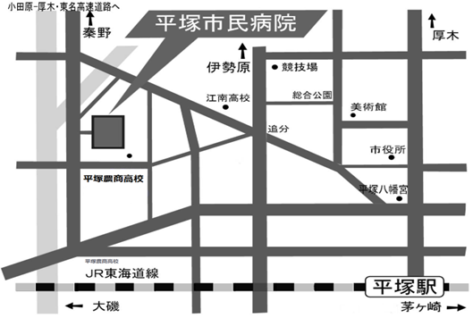 JR東海道線・平塚駅下車 北口からバスで15分(3番線、10番線・市民病院行)