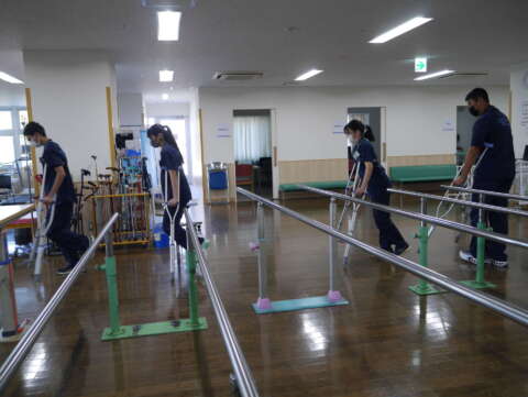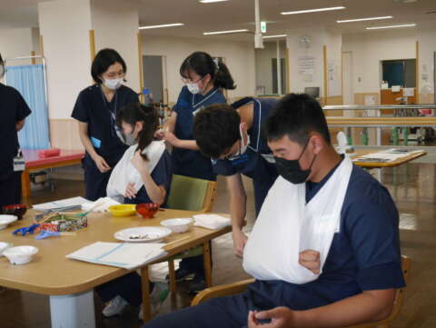 松葉杖体験・三角巾固定体験(理学療法士・作業療法士・言語聴覚士)
