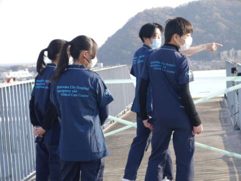 重症用のベッド・モニター・ヘリポート見学(医師・看護師・臨床工学技士)